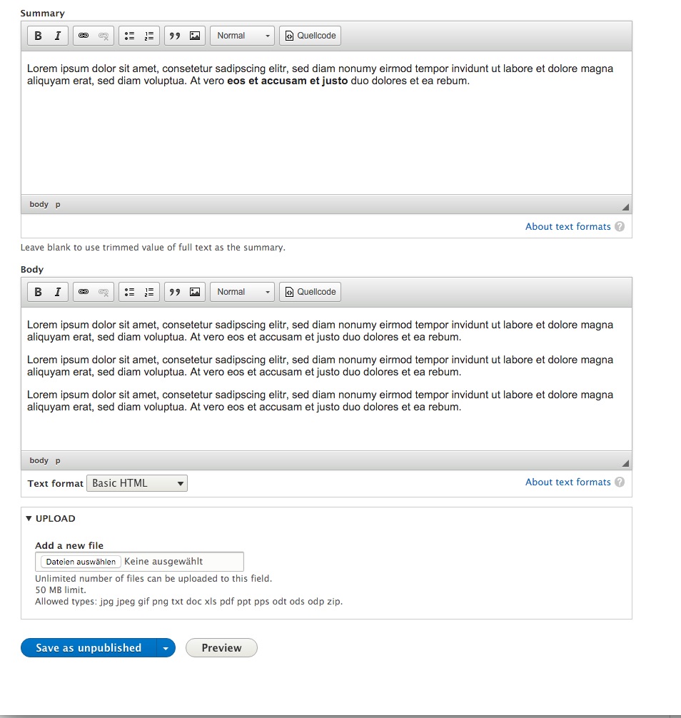 WYSIWYG editor available on the separate 'Summary' field on text areas that support them.