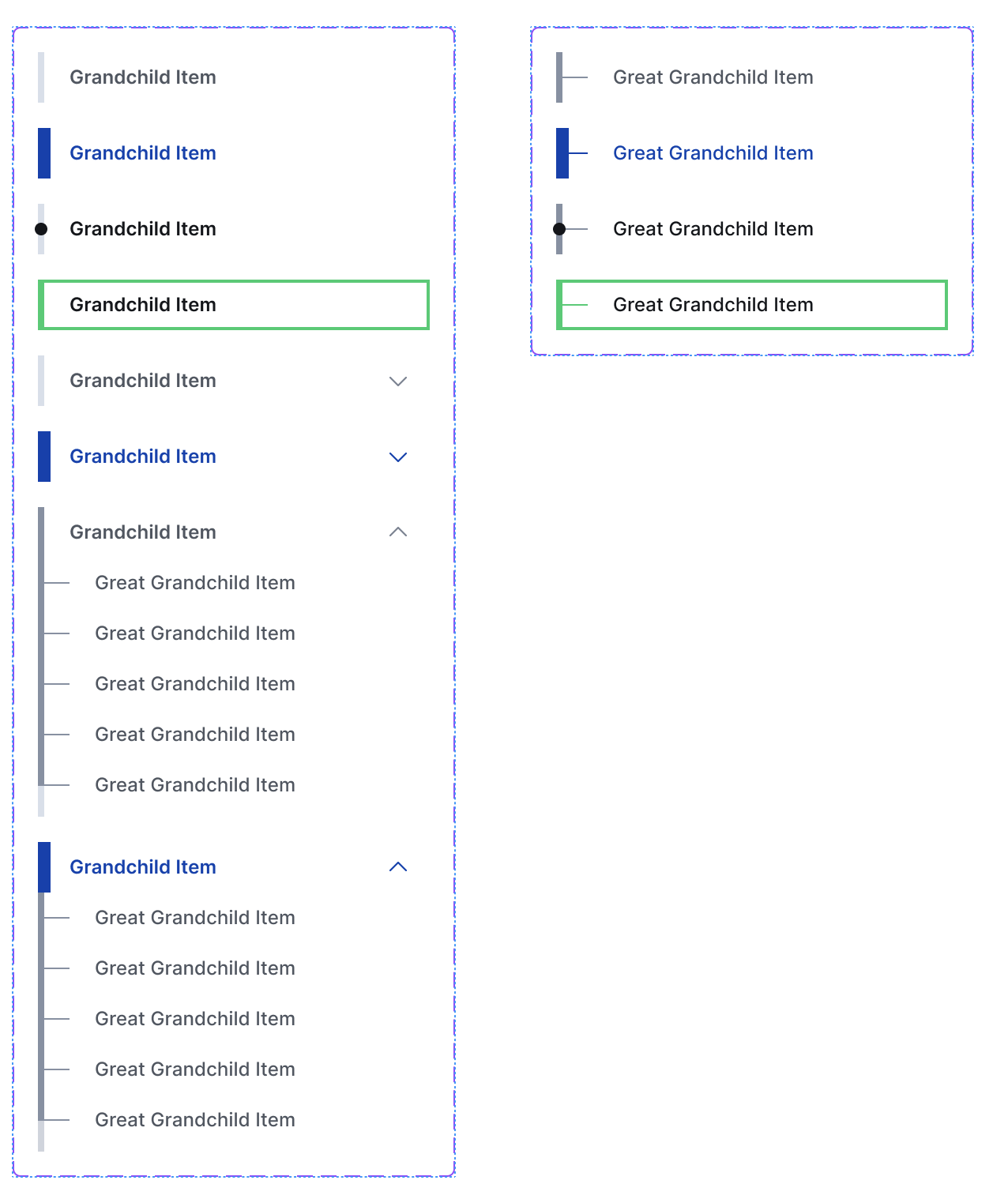 Initial implementation supports 3 levels but we want designs for 4 levels of menu hierarchy, since several contrib need them.